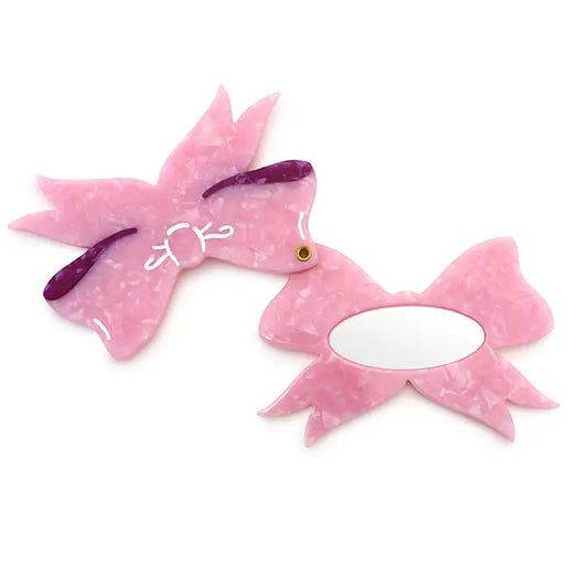 Swing-Hinge Folding Compact Mirror Ribbon Bow