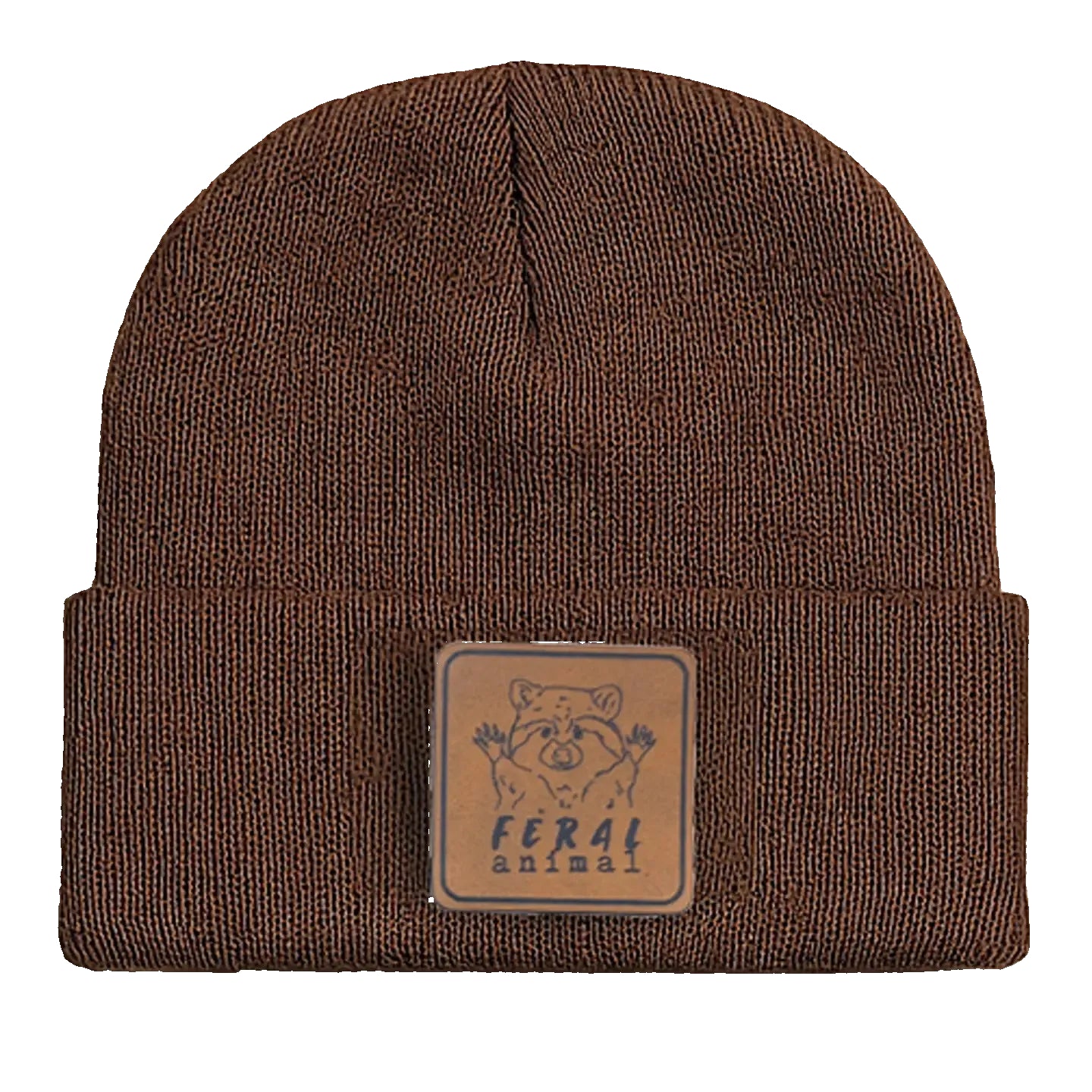 For kids with big personalities and a little wild streak, our “Feral Animal” Raccoon Youth Beanie features the design on a vegan leather patch and brings humor and attitude to any cold-weather assortment.